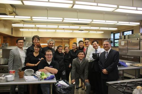 中國校長代表團團員與Tottenville高中師生於烹飪教室合影;