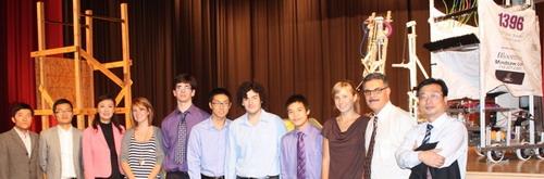 中國校長代表團團員與機器人、Intel俱樂部等社團師生合影 史島Tottenville高中校方就該校的管弦樂團和機器人、Intel俱樂部等學生社團進行深入的介紹,學生們熱情地展示機器人研究成果,而管弦樂團的學生也為代表團即興演奏一段,最後Tottenville高中師生親手準備了午宴,熱烈招待遠道的嘉賓。 |