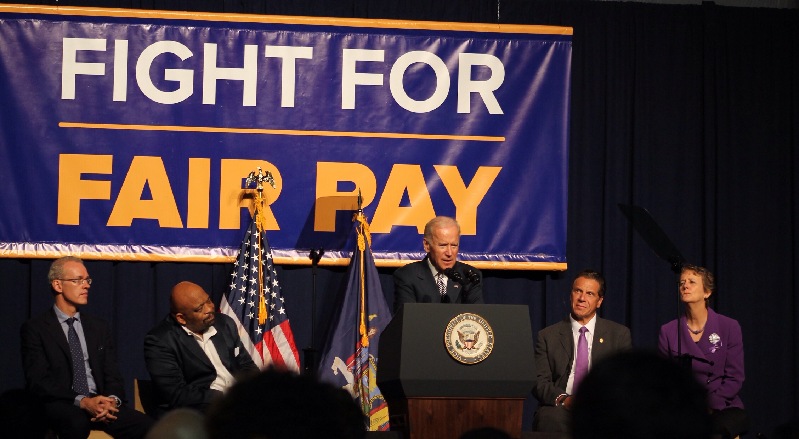 东南网9月12日讯(本网特约记者 白水)纽约当地时间10日,美国纽约州长办公室在纽约市贾维茨展览中心举办劳工议题的活动。州长葛谟宣布,他将在全州范围内推出将最低工资标准提高到每小时15美元的计划。据了解,在目前全美国,在全州范围内实行每小时15美元的最低工资标准,是一个覆盖面最广,金额最高的标准,也意味着纽约州将成为美国第一个采取这种高标准的州,具有里程碑的意义。这项政策对于众多纽约州的低收入工薪阶层和家庭来说,收益颇多,葛谟还表示,该项政策也有利于纽约州稳定和恢复经济发展。 早在今年7月,葛谟已经表态,赞成把快餐业员工的最低工资标准调高至每小时15美元,现在该项政策更进一步推广至所有行业。有意角逐2016年总统大选的现任美国副总统拜登受邀参加活动并讲话;包括州、市参、众议员以及多名工会领袖在内的约四百多名社会各界人士参加了该项造势活动。 代表旅美华人利益的商会、侨领也应邀出席了该项活动,对此调薪举动深表关注。他们是美国香港总商会主席陈善莊,秘书长朱立业、李迦佺,,常务副主席陈永琪、陈志平,美国福建华侨总商会主席郑淞,常务副主席江常挺,高宪富,冯光,林成辉,唐家胜,苏基方,陈惠,法律顾问严德威律师,美国象洋联谊会主席郑斌,美国福建同乡会常务副主席陈恒,美国首占联合总会主席黄开卒,美国福建商会主席林慈飞,美国八闽会所主席刘爱华,美国东岐联合总会主席倪周盆。 大会主席台 |