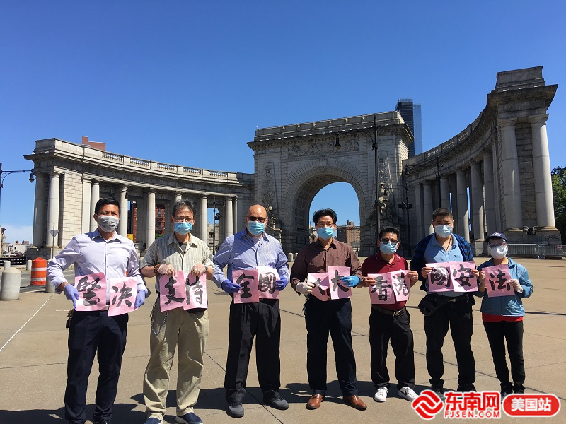活动现场 东南网美国5月31日讯(本网特约记者 纽约墨人 文/图)中国十三届全国人大三次会议高票通过了《全国人民代表大会关于建立健全香港特别行政区维护国家安全的法律制度和执行机制的决定》。5月30日,美国长乐南乡联合总会在纽约曼哈顿地标桥头以横幅方式对涉港国安立法表示坚决地支持和拥护。 美国长乐南乡联合总会主席刘爱华表示,为了维护国家安全和香港长期繁荣稳定,从国家层面建立健全香港维护国家安全法律制度和执行机制,是势在必行且刻不容缓。涉港国安立法是填补香港维护国家安全法律漏洞的正当之举、必要之举,有助于维护国家主权、安全和发展利益,确保香港“一国两制”行稳致远,保障香港长治久安和繁荣稳定。 参加当天活动的还有美国长乐南乡联合总会主要成员高秋华、郑峰、石喜乐、陈文、石春明、刘国林、李在云、潘敏辉、潘春林、郑美述、郑鸿飞、陈和平、陈宗荣、陈宝胜、潘金珠、陈增平、石金党、陈德官、李杰等。