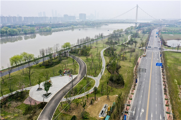 Aerial photo taken on March 18, 2019 shows an eco-park on Jiangxinzhou islet of the Yangtze River in Nanjing, east China's Jiangsu Province. (Xinhua/Li Bo) "It was on Jan. 1, 2014, when I saw over 40 finless porpoises jumping above the surface of Poyang Lake," she recalled. Poyang Lake is China's largest freshwater lake in the eastern province of Jiangxi. "The scene was very spectacular. This is the first time I've seen a real finless porpoise," said Jiang. Since then, she has been determined to protect the rare species. Since 2016, protecting the environment of the Yangtze, rather than large-scale development, has become the focus of the country's river development plans. The rallying call was heard as authorities across China carried out a series of measures, including preventing water pollution, restricting ship movement and patrolling the nature reserves. Scientific research by the Ministry of Agriculture and Rural Affairs in 2017 showed that there were 1,012 wild finless porpoises in China, of which 445 were in the main stream of the Yangtze River and 457 live in Poyang Lake. In addition to its strategic status in environmental protection, the Yangtze River also flows through many economically developed provinces and municipalities, making the region's sustainable and green development key to further driving China's economic growth. China in 2019 unveiled an action plan to protect and restore the Yangtze River with goals including eliminating more than 90 percent of "black and odorous" water bodies in cities at or above the prefectural level in the Yangtze River Economic Belt by the end of 2020. In April this year, the country released a guideline on improving the sewage treatment charging mechanism to promote green development in the Yangtze River Economic Belt. The move aims to use price leverage to improve the prevention and control of water pollution in the Yangtze River, according to the guideline.