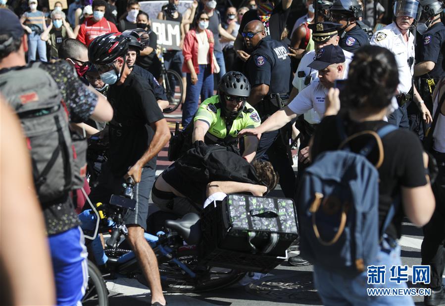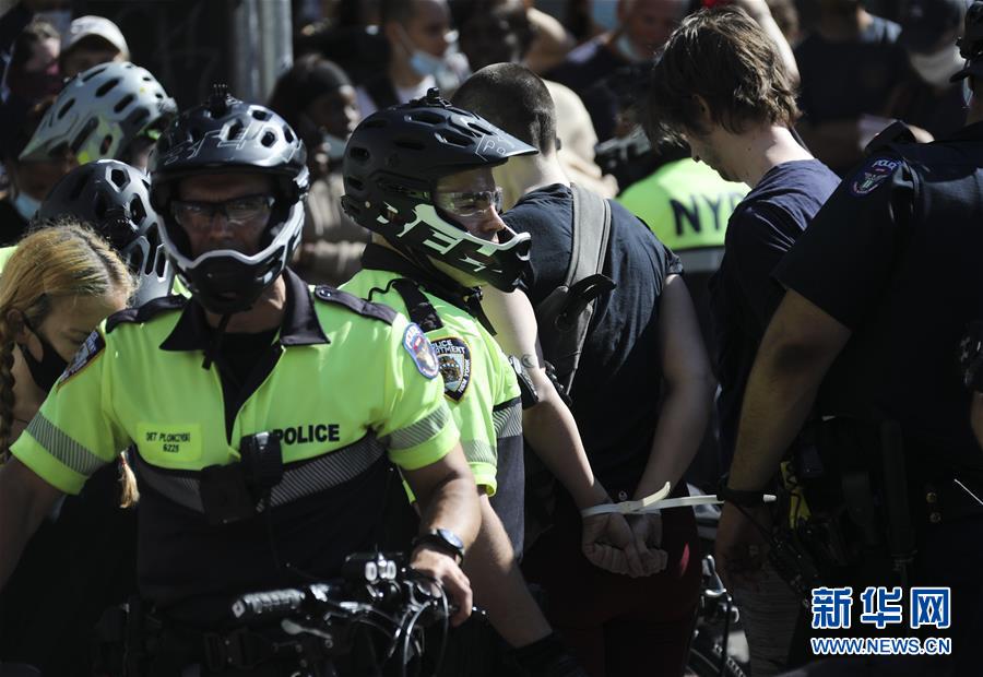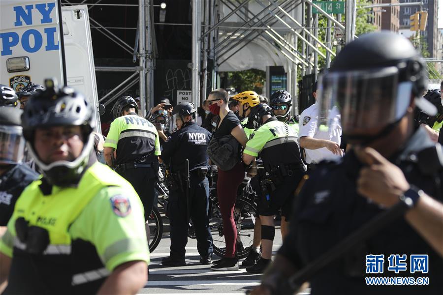 6月3日,警察在美国纽约街头逮捕抗议者。 新华社记者 王迎 摄