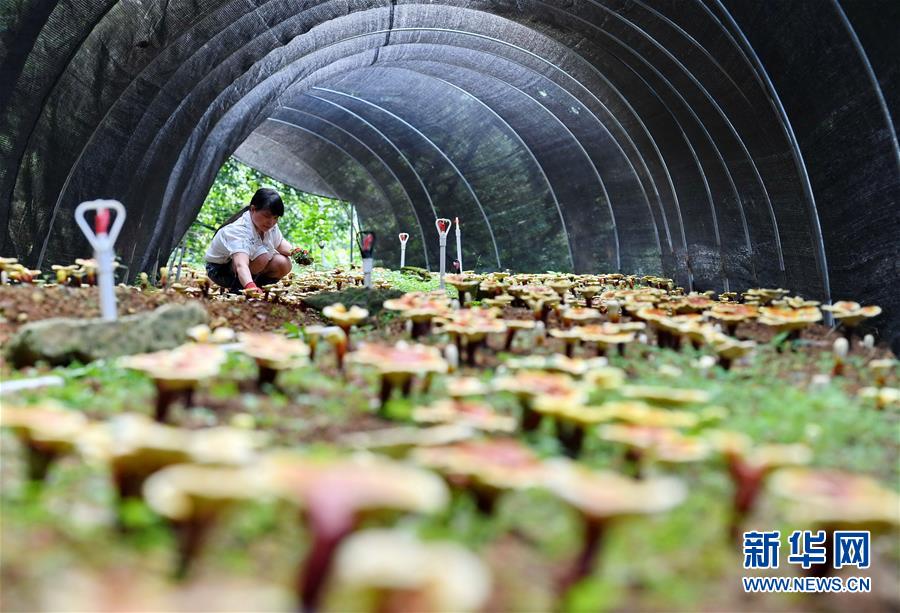 6月3日,技术人员陈育明在永春县岵山镇的一家农业生态庄园采摘铁皮石斛。 新华社记者 林善传 摄