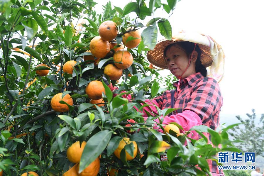 6月4日,女工张碧英在永春县桃城镇的上沙岭果园采摘永春岩柑。 近年来,福建省永春县依托当地气候和良好的自然生态环境,引导群众发展柑桔、佛手茶、铁皮石斛、花卉等特色农业,实现农民脱贫致富,助推乡村振兴。 新华社记者 林善传 摄