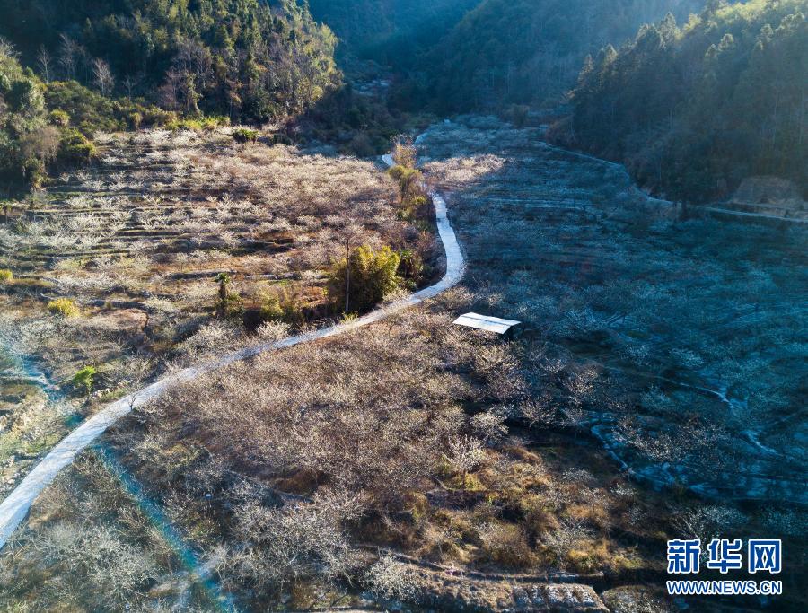 这是福建省福州市永泰县长庆镇上际村盛开的李花(2月19日,无人机照片)。